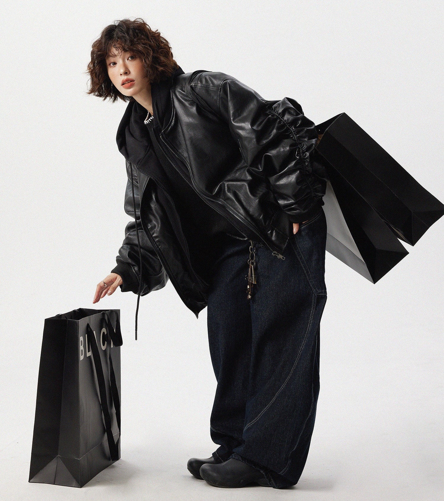 Retro Lightning Rhinestone Wide-Leg Jeans